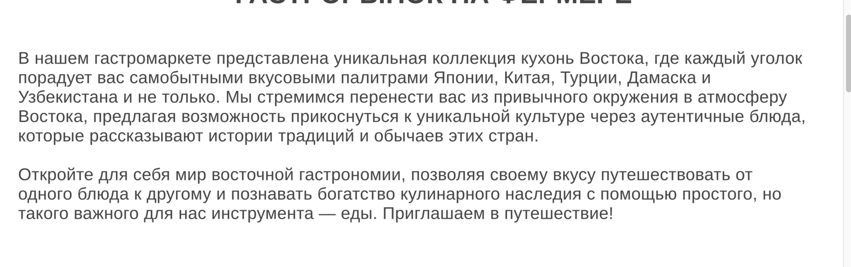 Но уже сейчас на нашем гастро-рынке вы можете найти:
